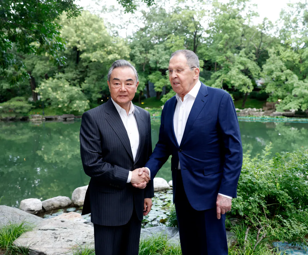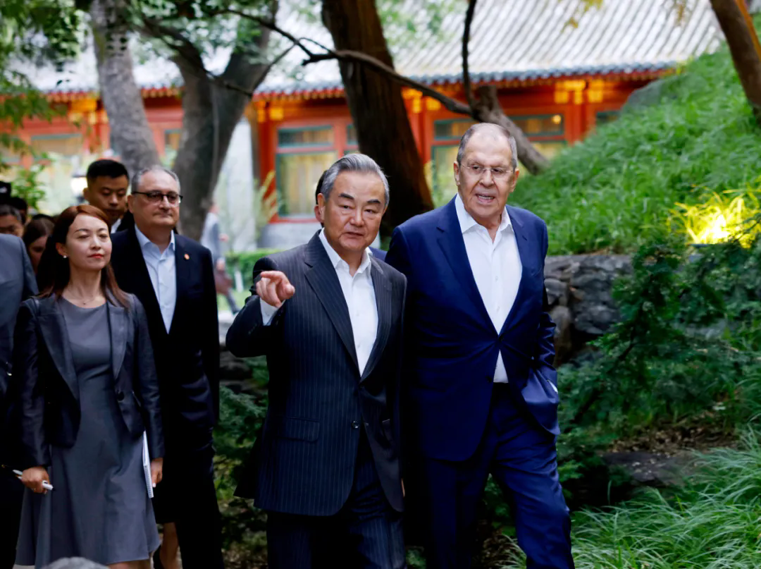 2025年7月13日,中共中央政治局委员、外交部长王毅在北京会见俄罗斯外长拉夫罗夫。