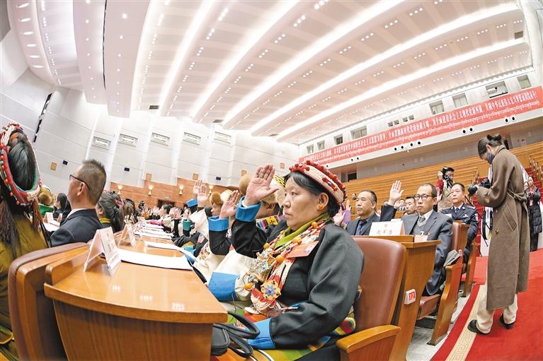 10日下午,迎着冬日的暖阳,自治区人大代表们昂首走进西藏人民会堂,参加自治区十二届人大二次会议闭幕会。