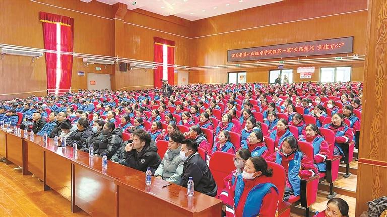 图为定日县第一初级中学“寒假第一课”活动现场。
